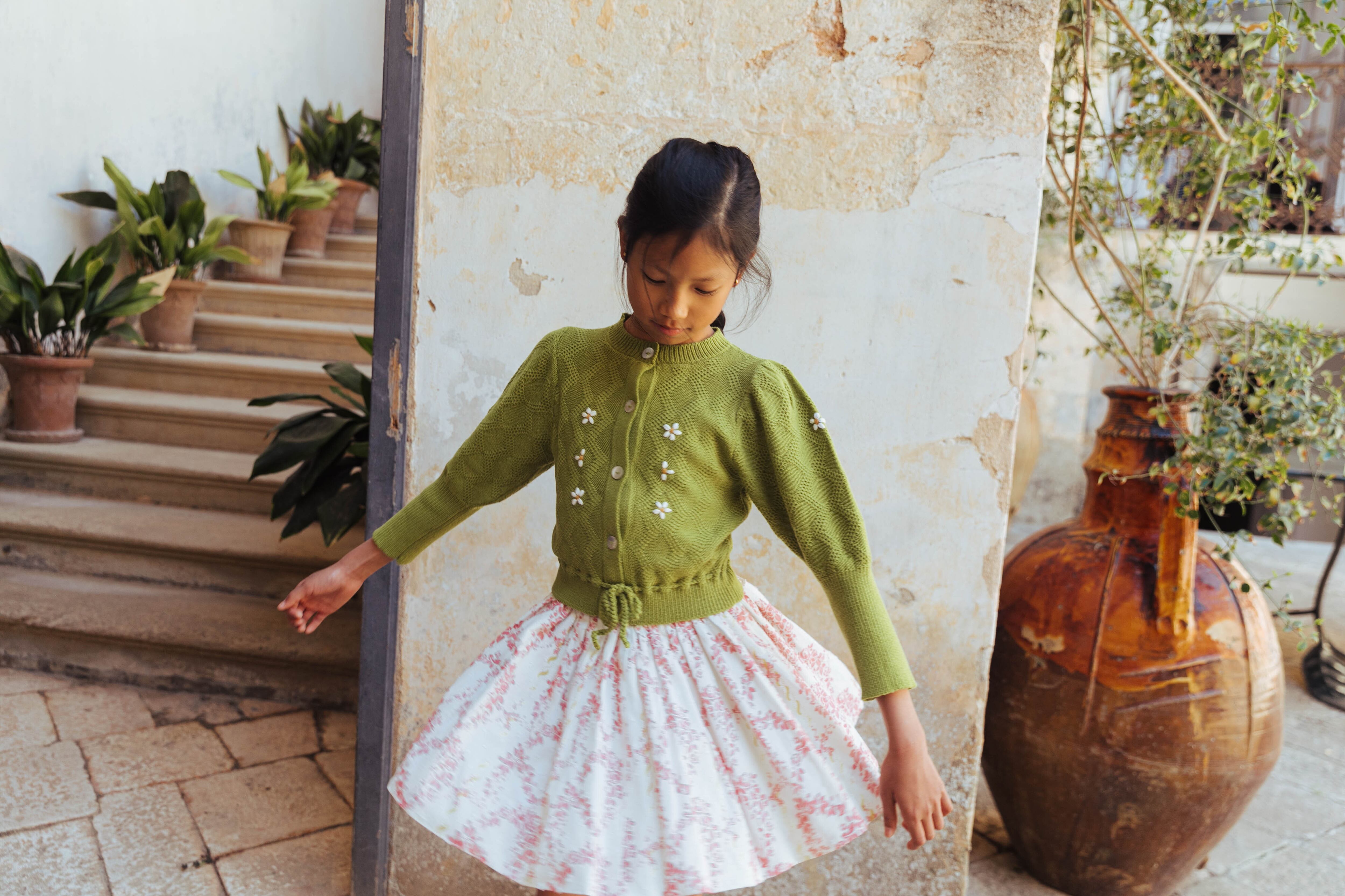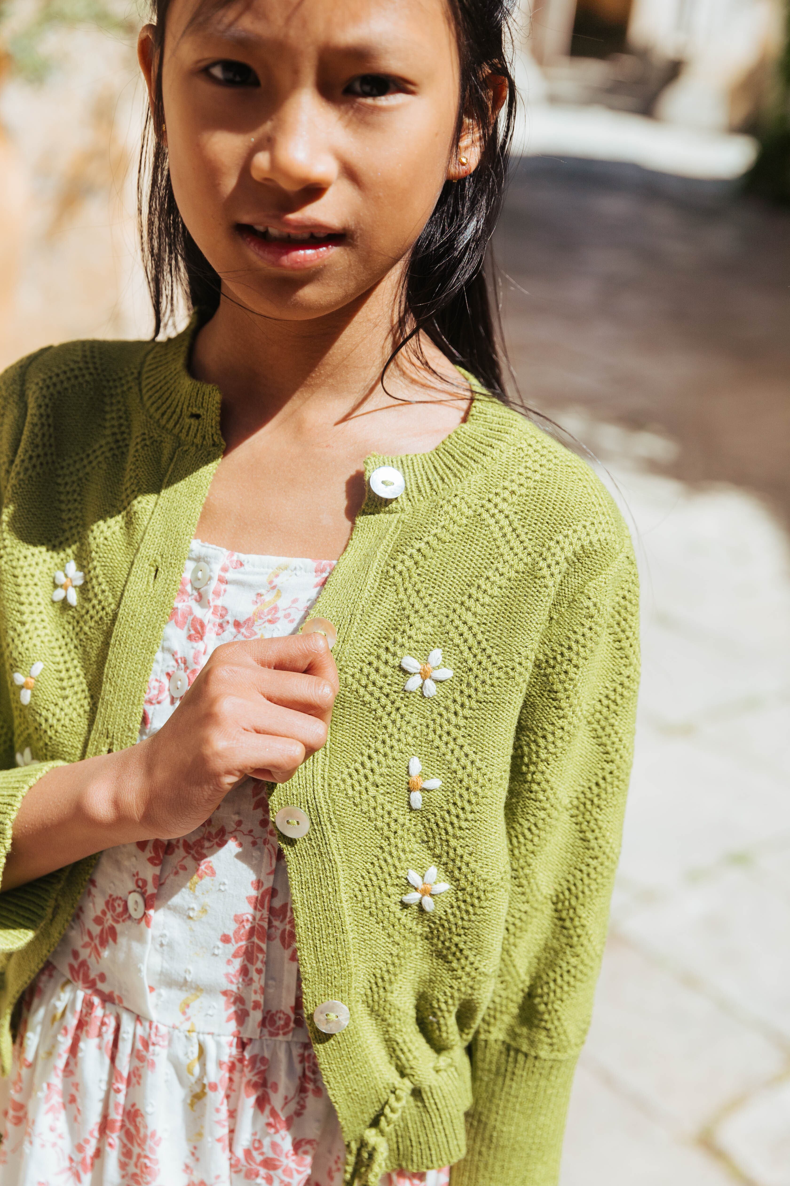 MOSS CARDIGAN Olive Green and Opaline / LALI SS25-7